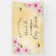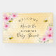 A yellow and golden honeycomb pattern as background. Decorated with pink tropical flowers, Hibiscus and happy smiling bumble bees. With the text: Welcome. Personalise and add the name of the mum to bee. The text: Baby is written with a modern hand lettered style script. Perfect as party wall decoration or as a welcome sign. Gender neutral or celebrating a baby girl.