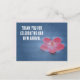 Thank your guests home with personalised appreciation postcard featuring a pink flower and blue water. Quickly and easily customise all text for your special celebration. The back is a solid colour with plenty of space to add additional text or photos.