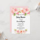 An elegant invitation card for a baby shower. With contemporary pink, peach and coral coloured watercolored dahlia flowers as decoration. Chic white background on front. The name is written with black hand lettered style script. Back: Pink blush coloured background for a baby girl.