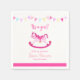Baby shower pink, it's a girl, pretty hand painted rocking horse with stars and graphic bunting personalised paper napkins. Customise with your own words, honouring name and baby shower date. Other matching baby girl showering items available. Original whimsical baby girl pink hobby horse watercolor painting and graphic design by Sarah Trett for www.mylittleeden.com on zazzle.