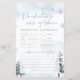 Baby predictions and advice game in winter theme with pine trees and snowflakes.