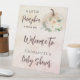 Baby shower pumpkin on the way cream welcome pedestal sign