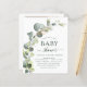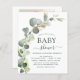 Eucalyptus Greenery Succulent Botanical Watercolor Spring Gender Neutral Baby Boy or Baby Girl Baby Shower Invitations on white background - includes beautiful and elegant script typography with modern botanical leaves and greenery for the special Mother to Be celebration.