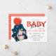 A balloon floating baby rabbit personalised for a little boy. Quickly Create & Customise Your Baby Shower Red and White Invitation . Click the "Customise it!" button to change the text size, text colour, font style and more!