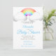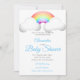 A simple colourful rainbow is the basis of this gender neutral baby shower invitation.