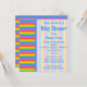 This custom baby shower invitation could be suitable for if the baby is going to be a boy or girl. A stripe pattern in rainbow colours, with pale stripes behind the writing. The text is in blue and can be personalised to create a custom invitation. A fun bright and colourful design.