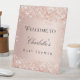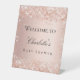 A welcome sign for a glamourous Baby Shower. A rose gold background decorated with confetti. Personalise and add a name.