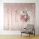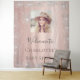 A welcome tapestry for a glamourous baby shower, sprinkle. A rose gold faux metallic looking background decorated with faux silver glitter dust. Personalise and add a high quality photo and name.