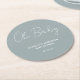 Baby shower script modern dusty blue elegant round paper coaster