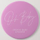 Baby shower script modern minimal cerise pink 6 cm round badge