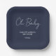 Baby shower script modern navy blue elegant paper plate