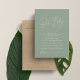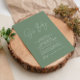 Baby shower script modern sage green elegant party invitation design. Ideal gender neutral design. Perfect coordinating autumn, fall winter baby shower design.