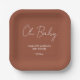 Baby shower script modern terracotta brown elegant party design. Ideal gender neutral design. Perfect coordinating summer, autumn, fall, winter baby shower design.