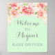 Welcome to the Baby Shower sign poster with custom name in pastel mint green with light blush pink vintage watercolor floral pattern.