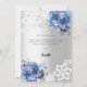 A modern and elegant baby shower thank you card. A faux silver looking background. Decorated with blue roses, florals flowers and lace.