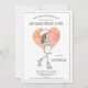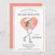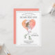 A whimsical cute peach baby shower sprinkle by mail invitation featuring an expectant mum walking with umbrella overlay on a peach pink heart and solid peach colour on the back of the invite.