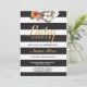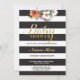 Black and white striped Baby Shower invite with gold glitter text and elegant floral design. Perfect for a Baby Girl or Boy, Twins, Mum Shower, Couples Shower etc. CHANGE THE TEXT TO SUIT YOUR PARTY & Back print included.