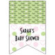 Baby Shower "Sugar and Spice," Swallowtail Banner design, Swallowtail shaped, Bunting Banner. This  "Sugar and Spice," Swallowtail Banner baby shower banner is made up of 16 customisable swallowtail shaped flags. Personalise the text by choosing your favourite font colour, size, style and wording.