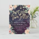 Sweet Little Twin Girls - Baby Shower Invitation Cards Templates - Faux Gold Foil Script, Elegant Watercolor Floral Pink Roses and String Lights on Purple Sparkle Bokeh Lights Background.