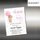 Baby shower teddy bear girl pink balloon luxury magnetic invitation