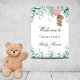 Baby shower teddy bear girl pink eucalyptus forest poster