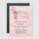 Baby shower teddy bear girl pink silver luxury magnetic invitation
