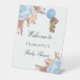 Baby shower teddy bear pampas grass blue boy pedestal sign