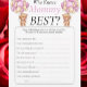 Question game card featuring watercolor , pink and purple to match time for tea collection. You need to answer as many questions as possible. fun way to interact with shower guests while the mum-to-be opens her gifts at her baby shower.