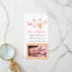 A customisable baby shower thank you card featuring pink, red and orange baby clothes hanging on a clothesline with 2 butterflies flying around. Usage of floral and stripes patterns and colour scheme suitable for baby girls. Floral frame at the bottom of card is to insert image of baby or family photo. Design by Rusty Doodle.