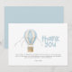 Baby shower script modern natural baby blue elegant party thank you postcard design. Stunning elegant watercolor hot air balloon design.