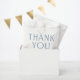 Thank your baby shower guests with this cute simple chambray blue personalised favour bag. Featuring blue type (thank you is not editable but the smaller text is) with a chambray effect (please note - no actual texture here), this bag is perfect for baby shower favours and more. Designed to coordinate with the Chambray baby shower collection by Lea Delaveris Design, this baby shower favour bag can include name, date and more. Find matching chambray baby shower invitations, party supplies and more in the collection.