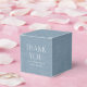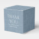 Thank your baby shower guests with this cute simple chambray blue personalised favour box. Featuring white type (thank you is not editable but the smaller text is) on a background with a chambray effect (please note - no actual texture here), this box is perfect for baby shower favours and more. Designed to coordinate with the Chambray baby shower collection by Lea Delaveris Design, this baby shower favour box can include name, date or other text. Find matching chambray baby shower invitations, party supplies and gifts in the collection.