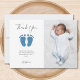 This Boy's Baby Shower Thank You Card is decorated with elegant script typography and cute blue glitter baby's feet.