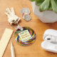 Go bright and vibrant for your baby shower with this keepsake keychain. The background is a vivid swirl of colour with a large solid square for your text. Easily and quickly personalise this inexpensive keychain for a fun memento for your new baby celebration.