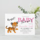 We're throwing a modern and cute tiger-themed baby shower, embracing the spirit of adventure with a safari theme. The invitation is designed in soft pink hues, perfect for our "little wild one." Expect adorable zoo animal decorations and plenty of fun activities that capture the excitement of welcoming our new arrival.