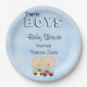 It's Twins! Adorable personalised boy twins baby shower paper plates. Baby blue background, A Twin Boys banner and twin boys babies playing with trucks. Just fill in the details and you're all set to go. All our products can be custom designed to meet your needs at no extra charge. Simply contact us through our store. Coordinating products available: Just ask us!