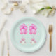Sweet baby shower plates featuring girl twins and pink balloons.