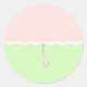 Sweet baby shower stickers, featuring a pink polka-dot umbrella on a mint green background.