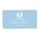 Custom pastel pink and white baby shower water bottle labels with feet footprints. Personalised elegant DIY waterbottle sticker template. Stylish script typography for name and birth date of baby girl or boy. Use as classy table decoration or thank you favour for guests at the party. Neutral baby foot design with customisable background colour. ie pastel blue or soft yellow.