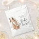 Baby shower watercolor illustration simple script. Natural rust gender unknown modern baby party decor favour bag. Part of a indie collection.
