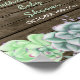 Personalised Baby Shower Welcome Sign. This rustic, botanical design features garlands of watercolor succulents and foliage, forming an attractive border for your custom text. The sample wording reads "Welcome to [name's] Baby Shower [date]" and the template is set up ready for you to edit this to suit your special occasion. The poster is printed in a gender neutral colour palette, with shades of green and purple on a background of country barn wood. A trendy and elegant choice for either a baby boy or baby girl baby shower.