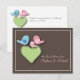 A fun activity for you to include at the baby shower - place these cards on the tables and invite guests to give the new Mummy (and Daddy)-to-be advice that is sure to be appreciated. Makes lovely little keepsakes to keep as well. Features a cute little bird family of Mum, Dad, and baby girl all sitting upon a heart of green and set against a soft mocha brown background.
