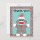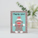 So cute! Adorable baby sock monkey thanks you on this aqua blue background. Great for birthday's, birth or baby shower thank you notes or just because you love sock monkeys! Back has room for your note. Hand drawn illustration by McBooboo