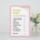 The Price is Right game is a fun activity for any Baby Shower, as guests try to guess the price of an assortment of baby items. This card comes in a pink colour scheme, featuring colourful confetti. The perfect addition to a Baby Shower or Baby Sprinkle party!