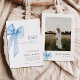 Celebrate the arrival of your baby boy in style with this charming Baby Sprinkle Blue Bow Baby Shower invitation. Featuring a beautiful pink watercolor bow and graceful script typography, this design blends timeless elegance with modern flair. Sophisticated, sweet, and sure to leave a lasting impression. Easily customise it by clicking "Personalise this design".