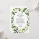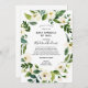 Long Distance Baby Sprinkle by mail invitation featuring watercolor greenery branches and white flowers sweeping over the corners of the design. Personalise with your information or click "Click to customise further" to edit font styles, size and colours.