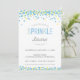 Sweet Baby Sprinkle Invitation in a blue, mint green and yellow color scheme, featuring colorful dots of confetti sprinkles. This design is perfect for a Baby Sprinkle, or for any Baby Shower celebration with a sprinkle or confetti theme.