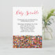 A baby shower but for a subsequent child being born. A mini baby shower. Baby shower invitation with photo of candy rainbow sprinkles.