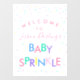 Baby Sprinkle window cling for your baby sprinkle party! Soft colourful designs with pastel sprinkles and fun typography with blue, green, yellow, pink and purple. Perfect welcome sign - easy on and off for the party!