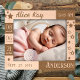 Personalised Baby birth information, statistics, cute star, etched wood frame.
